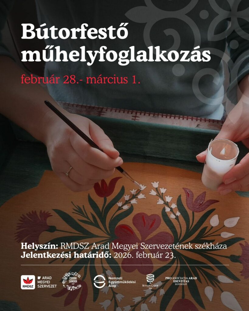 Az RMDSZ Arad Megyei Szervezete és a Pro Identitas Egyesület népi bútorfestő műhelyfoglalkozást hirdet a Csoóri Sándor Alap és a Nemzeti Kulturális Alap támogatásával.